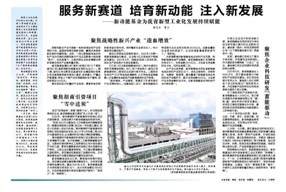 新動能基金助力我省產業集群式發展【貴州日報】